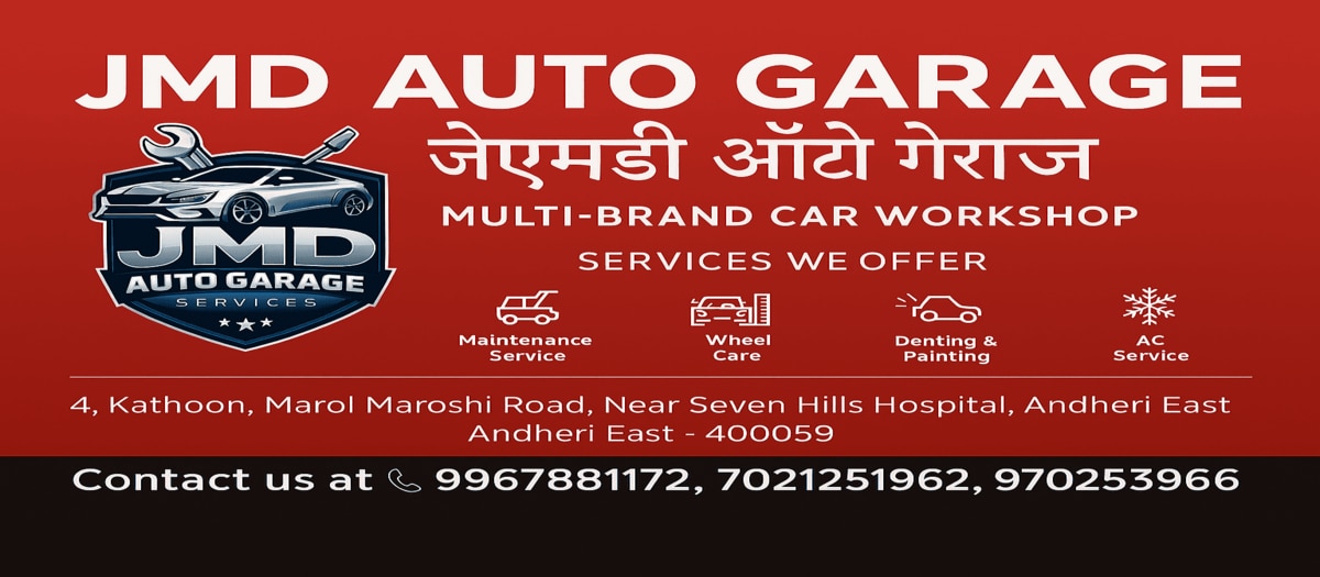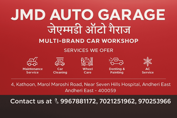 JMD AUTO GARAGEJMD Auto Garage established in 2005 at Andheri East, Mumbai, We provide car repair and routine maintenance service in high class and quality of service, known for providing expert vehicle care. The business is praised for its reliable services, customer-first approach, and use of genuine spares. Services likely include routine maintenance like oil changes, brake repairs, engine diagnostics, and complete overhauls.