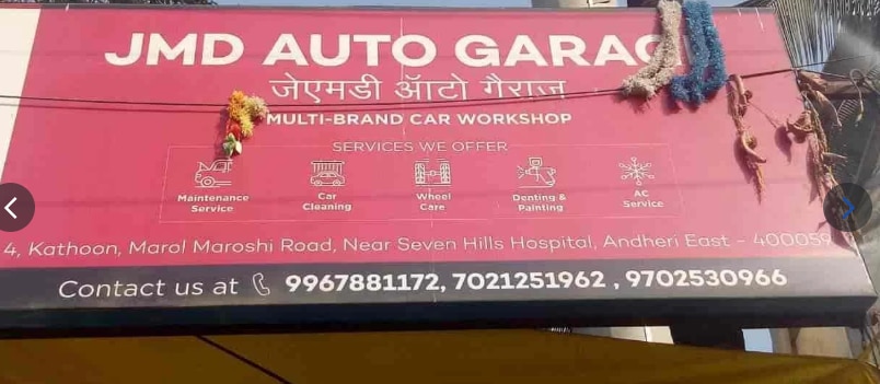 JMD Auto Garage in Andheri East, Mumbai, is a car repair and maintenance service known for providing expert vehicle care. The business is praised for its reliable services, customer-first approach, and use of genuine spares. Services likely include routine maintenance like oil changes, brake repairs, engine diagnostics, and complete overhauls.